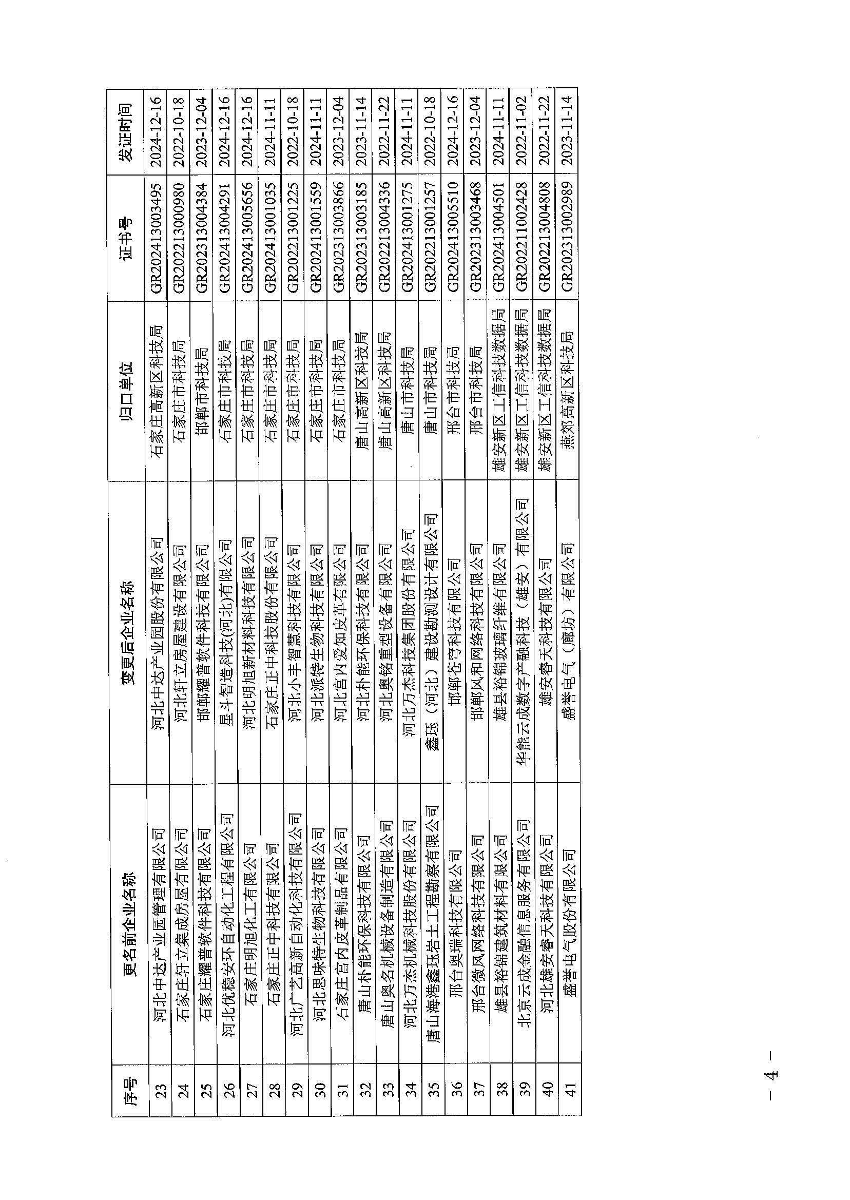 關(guān)于公布河北省2025年第三批更名及重大變化高新技術(shù)企業(yè)的通知